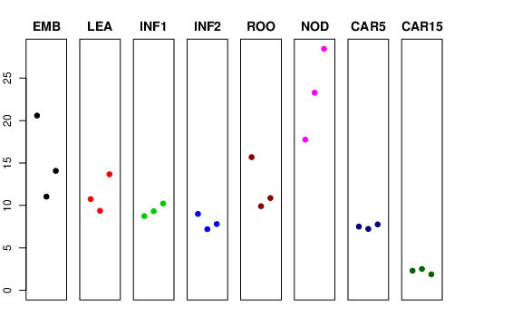 | ROO | Roots from the seedlings (10 cm shoot stage) | 15.6919 | 9.90823 | 10.869 | 0 |