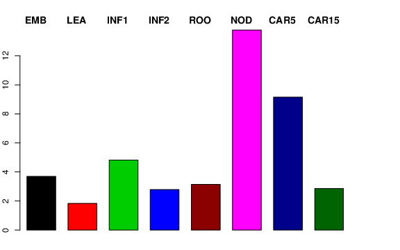| ROO | Roots from the seedlings (10 cm shoot stage) | 9.13993 | 1.40555 | 3.51394 | 3.13593 |