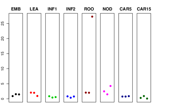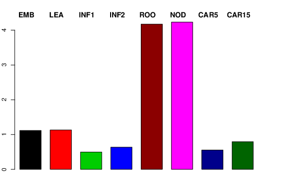 | ROO | Roots from the seedlings (10 cm shoot stage) | 2.06481 | 2.02178 | 27.2944 | 4.17601 |