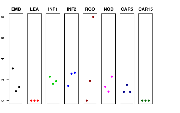 | ROO | Roots from the seedlings (10 cm shoot stage) | 0 | 1.89582 | 8.01701 | 4.46937 |