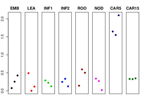 | NOD | Developing tillers at six leaf stage, 3rd internode | 0.339796 | 0.271758 | 0.0189243 | 0.603726 |