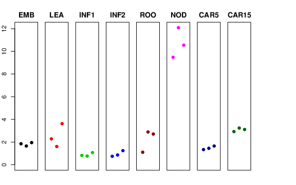 | ROO | Roots from the seedlings (10 cm shoot stage) | 1.10097 | 2.89063 | 2.70795 | 0 |