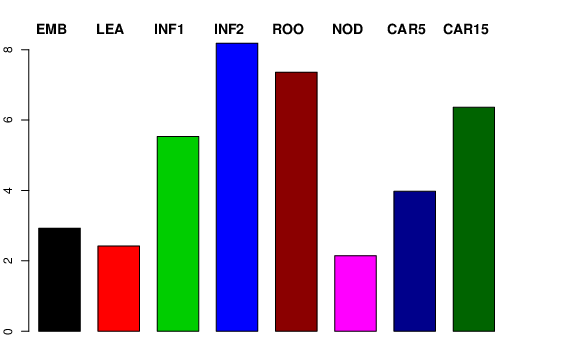 | ROO | Roots from the seedlings (10 cm shoot stage) | 0 | 2.72626 | 0 | 7.36228 |