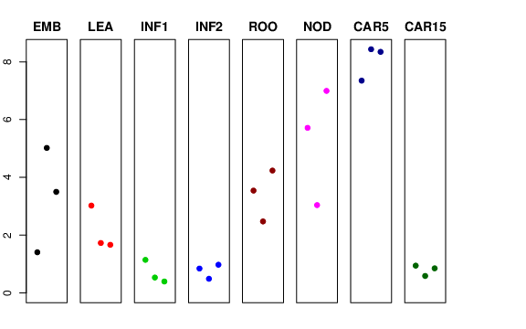 | ROO | Roots from the seedlings (10 cm shoot stage) | 3.54143 | 2.47412 | 4.23537 | 0 |