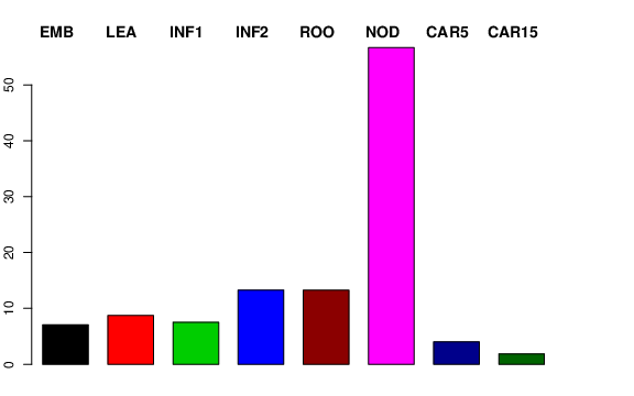 | NOD | Developing tillers at six leaf stage, 3rd internode | 21.8233 | 20.2399 | 8.1844 | 56.6723 |