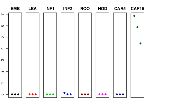 | ROO | Roots from the seedlings (10 cm shoot stage) | 0 | 0 | 0 | 0 |