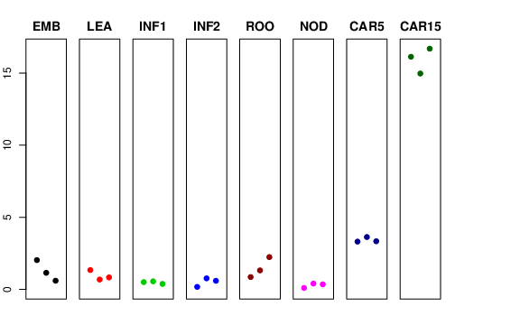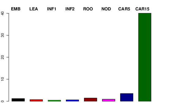 | ROO | Roots from the seedlings (10 cm shoot stage) | 0.854227 | 1.31317 | 2.23699 | 1.44708 |