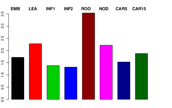 | ROO | Roots from the seedlings (10 cm shoot stage) | 0 | 1.44408 | 0.625859 | 3.53817 |