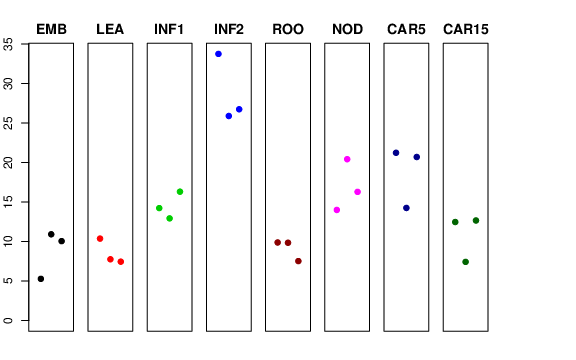 | ROO | Roots from the seedlings (10 cm shoot stage) | 9.87786 | 9.84286 | 7.52061 | 7.479 |