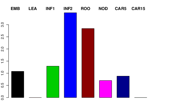 | ROO | Roots from the seedlings (10 cm shoot stage) | 0 | 1.06723 | 0 | 2.83905 |