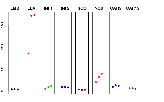 | ROO | Roots from the seedlings (10 cm shoot stage) | 3.19276 | 2.23255 | 2.35492 | 0 |