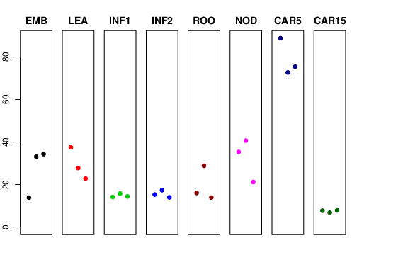 | ROO | Roots from the seedlings (10 cm shoot stage) | 16.0533 | 28.8212 | 13.8872 | 0 |