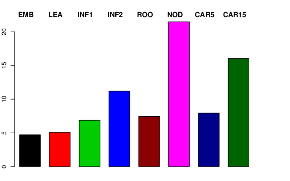 | NOD | Developing tillers at six leaf stage, 3rd internode | 7.20427 | 7.5903 | 9.83043 | 21.4877 |