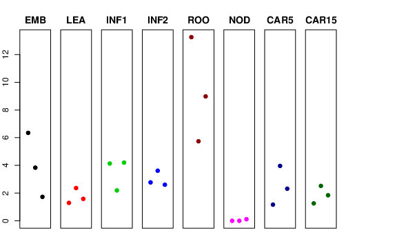 | ROO | Roots from the seedlings (10 cm shoot stage) | 13.2588 | 5.74037 | 8.98196 | 0 |