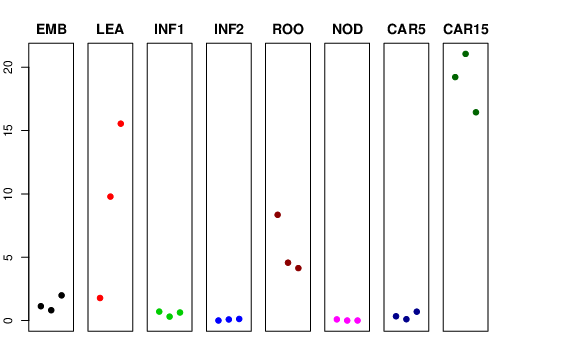| ROO | Roots from the seedlings (10 cm shoot stage) | 8.34935 | 4.56614 | 4.13621 | 0 |