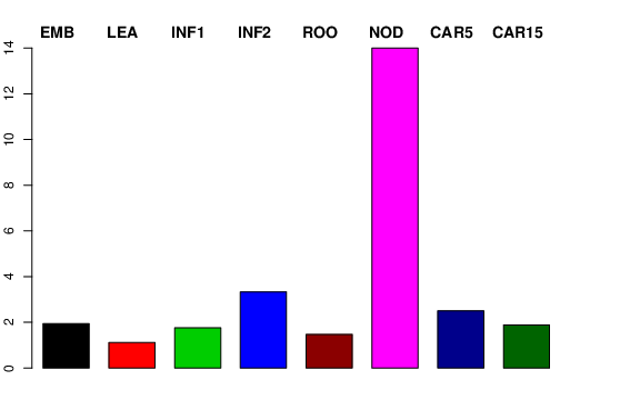 | ROO | Roots from the seedlings (10 cm shoot stage) | 1.63911 | 1.07481 | 1.59342 | 1.47206 |