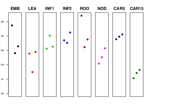 | ROO | Roots from the seedlings (10 cm shoot stage) | 5.41824 | 3.23057 | 3.76413 | 3.88255 |