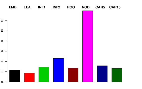 | ROO | Roots from the seedlings (10 cm shoot stage) | 1.91138 | 2.38499 | 2.32415 | 2.69263 |