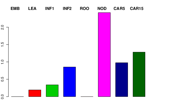 | NOD | Developing tillers at six leaf stage, 3rd internode | 0 | 0.748627 | 0.353352 | 2.42161 |