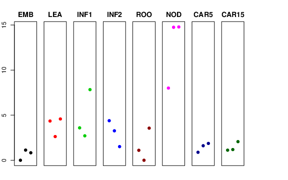 | ROO | Roots from the seedlings (10 cm shoot stage) | 1.10542 | 0 | 3.5628 | 0 |