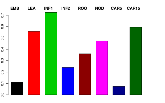 | ROO | Roots from the seedlings (10 cm shoot stage) | 0.0848387 | 0.17219 | 0.309985 | 0.360526 |