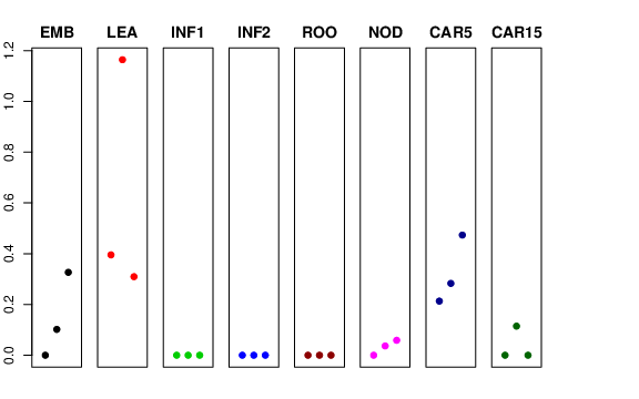 | ROO | Roots from the seedlings (10 cm shoot stage) | 0 | 0 | 0 | 0 |