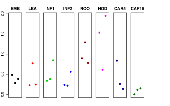 | INF2 | Developing inflorescences (1-1.5 cm) | 0.236329 | 0.217136 | 0.563349 | 0 |