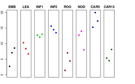 | ROO | Roots from the seedlings (10 cm shoot stage) | 1.40985 | 7.02847 | 4.42207 | 3.88571 |