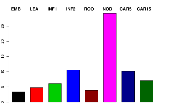 | NOD | Developing tillers at six leaf stage, 3rd internode | 12.7337 | 13.984 | 8.01395 | 29.2219 |