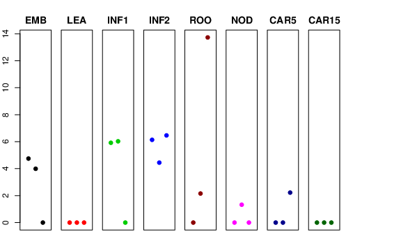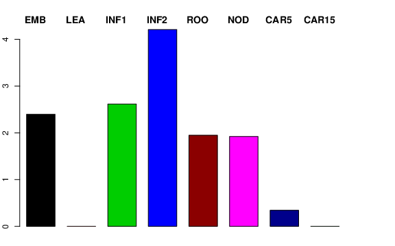 | ROO | Roots from the seedlings (10 cm shoot stage) | 0 | 2.15546 | 13.7327 | 1.94827 |