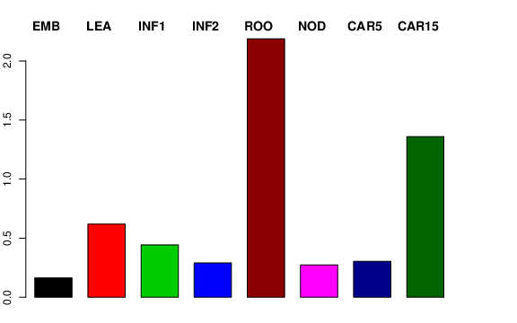 | ROO | Roots from the seedlings (10 cm shoot stage) | 0 | 1.10937 | 0 | 2.18829 |