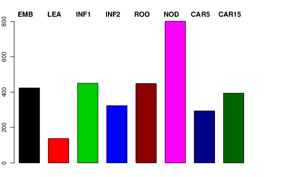 | ROO | Roots from the seedlings (10 cm shoot stage) | 331.134 | 325.456 | 285.939 | 448.598 |