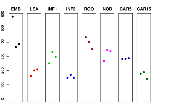 | ROO | Roots from the seedlings (10 cm shoot stage) | 434.985 | 400.21 | 351.936 | 562.172 |