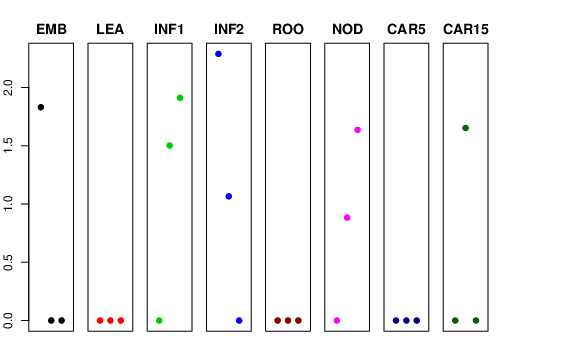 | ROO | Roots from the seedlings (10 cm shoot stage) | 0 | 0 | 0 | 0 |