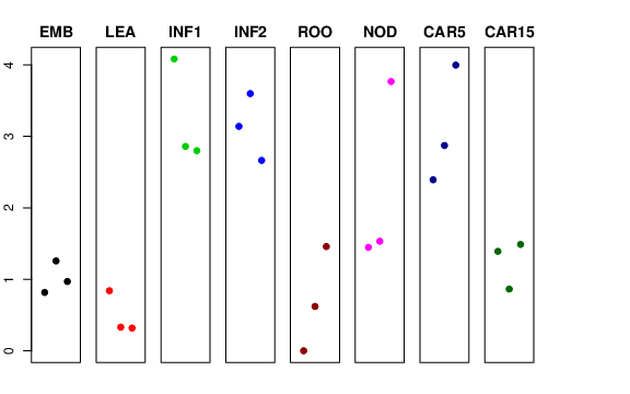 | ROO | Roots from the seedlings (10 cm shoot stage) | 0 | 0.620002 | 1.45832 | 1.3013 |