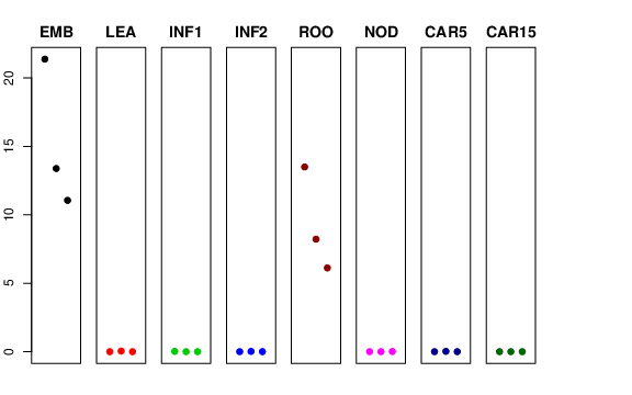 | ROO | Roots from the seedlings (10 cm shoot stage) | 13.4995 | 8.22177 | 6.11865 | 10.0194 |