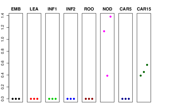 | ROO | Roots from the seedlings (10 cm shoot stage) | 0 | 0 | 0 | 0 |