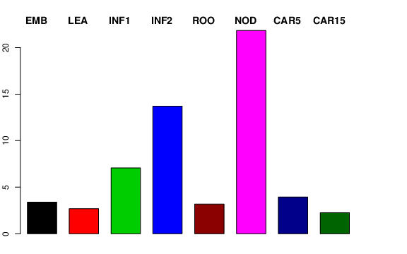 | ROO | Roots from the seedlings (10 cm shoot stage) | 3.01422 | 2.70378 | 2.35358 | 3.17392 |