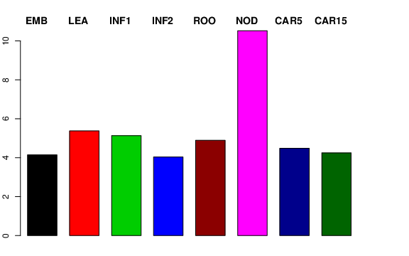 | NOD | Developing tillers at six leaf stage, 3rd internode | 1.6075 | 2.44509 | 1.8425 | 10.5232 |