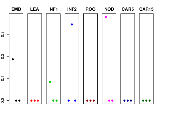| ROO | Roots from the seedlings (10 cm shoot stage) | 0 | 0 | 0 | 0 |