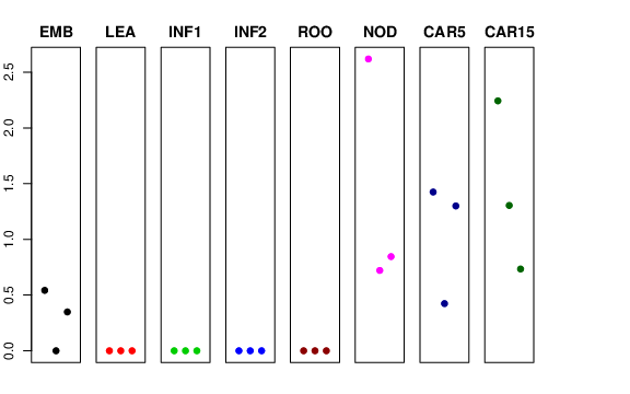 | ROO | Roots from the seedlings (10 cm shoot stage) | 0 | 0 | 0 | 0 |