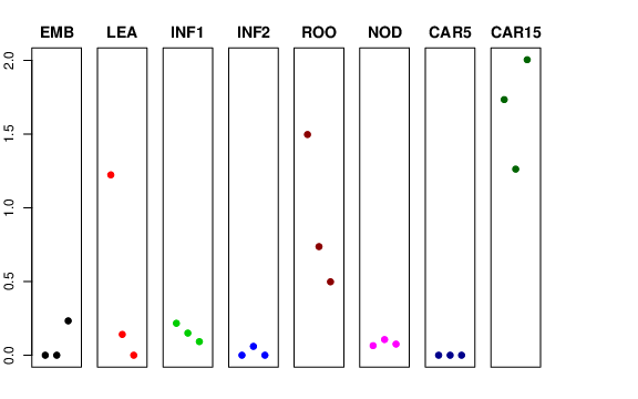| ROO | Roots from the seedlings (10 cm shoot stage) | 1.49743 | 0.736809 | 0.498113 | 1.13963 |