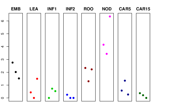 | ROO | Roots from the seedlings (10 cm shoot stage) | 2.33617 | 1.2978 | 2.22634 | 0 |