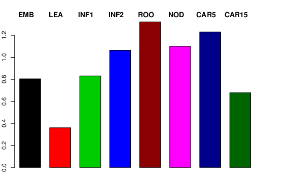 | ROO | Roots from the seedlings (10 cm shoot stage) | 0.279193 | 0.623346 | 1.11051 | 1.32347 |