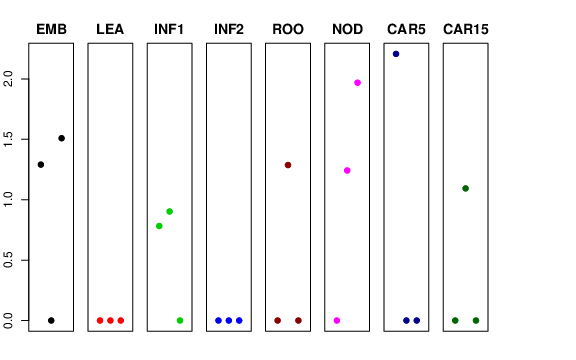 | ROO | Roots from the seedlings (10 cm shoot stage) | 0 | 1.28738 | 0 | 0 |