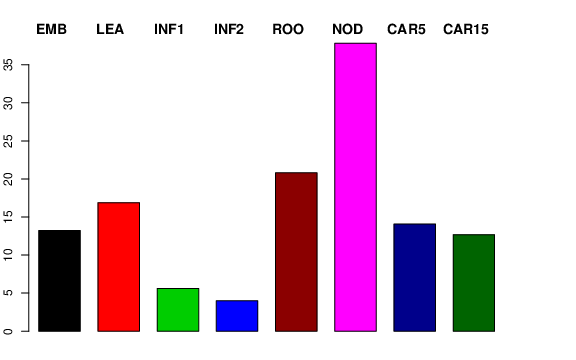 | NOD | Developing tillers at six leaf stage, 3rd internode | 20.8762 | 15.8343 | 3.78783 | 37.8315 |