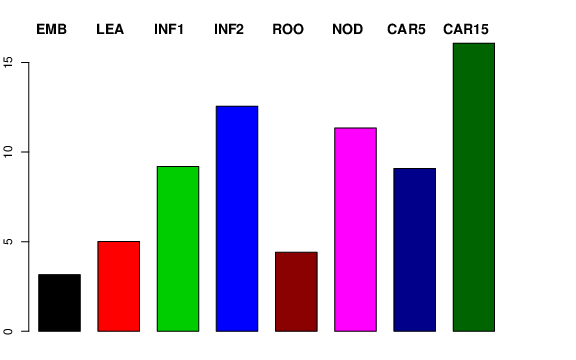 | ROO | Roots from the seedlings (10 cm shoot stage) | 3.03889 | 2.49039 | 4.06891 | 4.40527 |