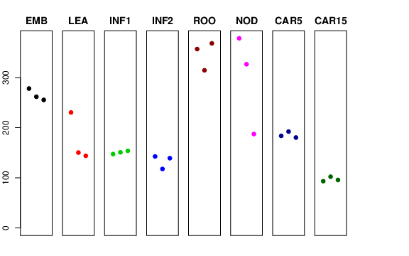 | INF2 | Developing inflorescences (1-1.5 cm) | 142.617 | 117.649 | 139.185 | 155.087 |