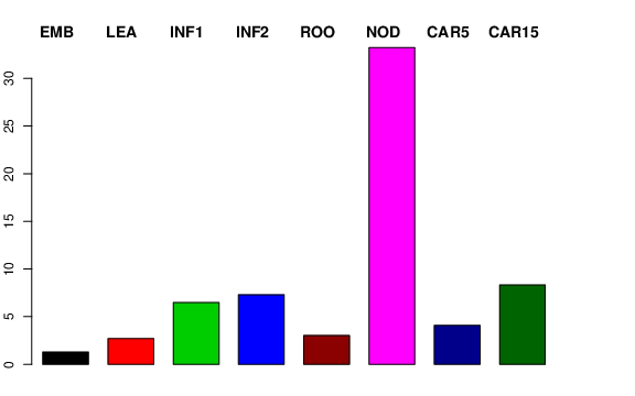 | NOD | Developing tillers at six leaf stage, 3rd internode | 7.77029 | 9.33839 | 12.6578 | 33.2359 |