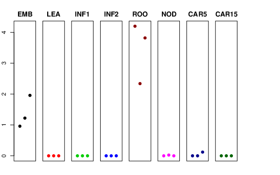 | ROO | Roots from the seedlings (10 cm shoot stage) | 4.19992 | 2.33976 | 3.81988 | 2.9859 |
